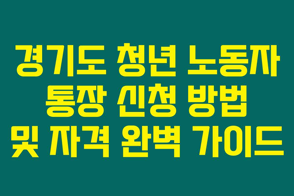 혹시 경기도 청년 노동자 통장에 대해 잘 모르신다면, 경제적 안정을 꿈꾸는 청년들에게는 꼭 알아야 할 중요한 정보입니다. 이 기회를 통해 안정적인 미래를 준비하고 싶다면, 아래에서 자격요건과 신청 방법을 자세히 확인해보세요. 여러분의 소중한 자산을 키울 수 있는 기회를 놓치지 마세요!