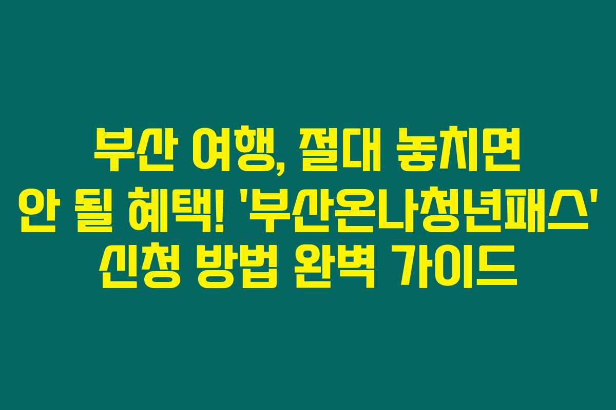 부산여행은 부산온나청년패스와 함께하면 더욱 특별해지니까요. 기회를 놓치지 마세요!