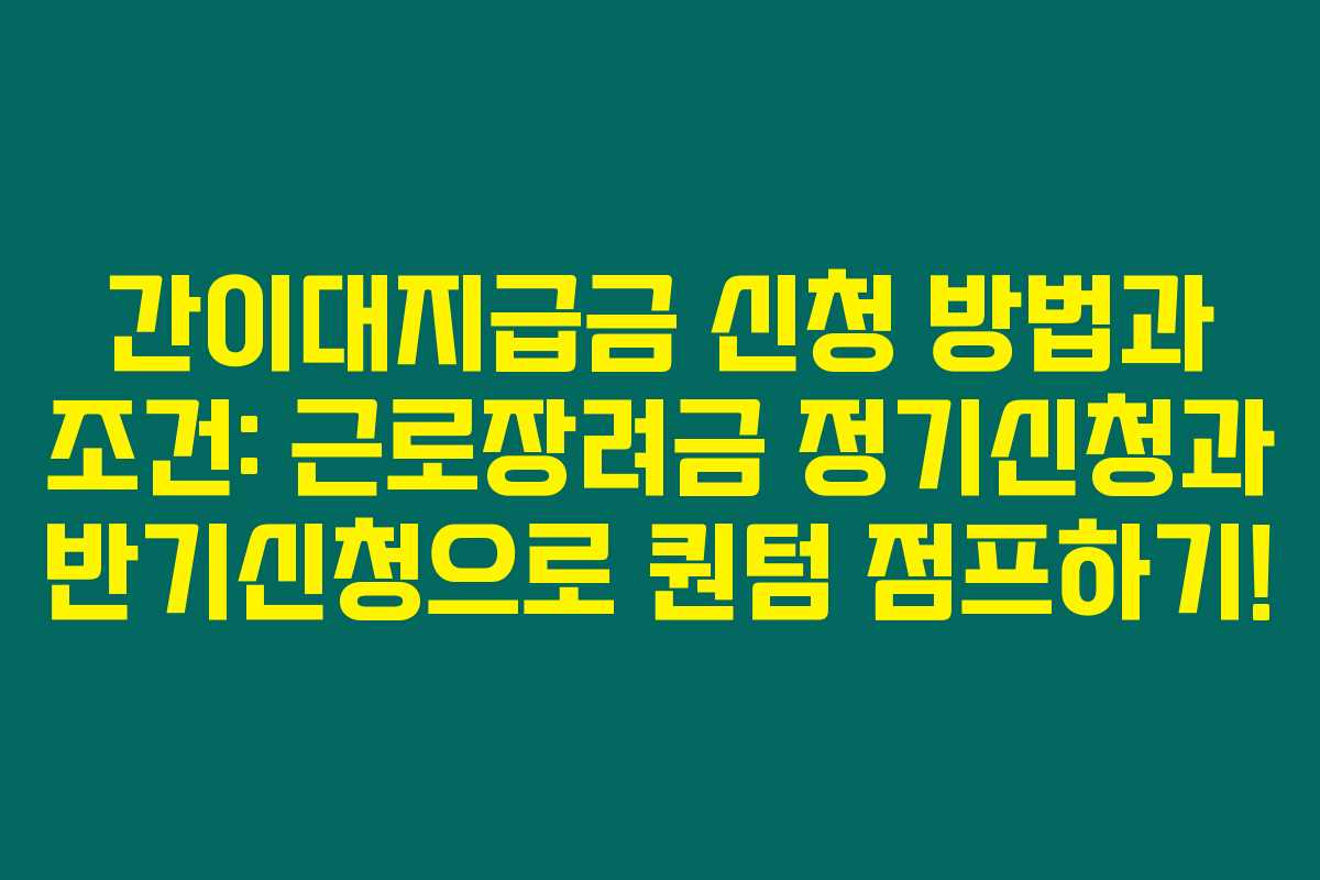 여러분도 간이대지급금과 근로장려금으로 소중한 혜택을 반드시 누리세요! 이 정보가 여러분의 경제 생활을 풍요롭게 만들어 줄 것이라 믿어요!