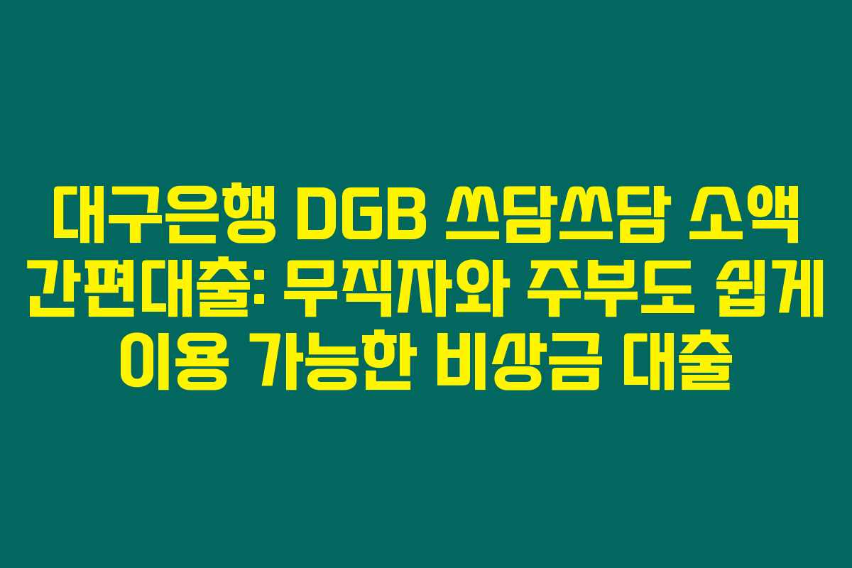 이처럼 DGB 쓰담쓰담 소액 간편대출은 누구에게나 기회를 제공하는 대출 상품이에요. 무직자와 주부도 쉽게 접근할 수 있어, 비상금이 필요할 때 큰 도움이 될 수 있답니다. 부담 없이 신청해보세요!