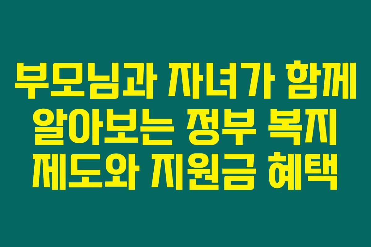 부모님을 위해 내가 할 수 있는 작은 배려가, 실질적인 도움으로 이어질 수 있습니다. 자녀가 직접 확인하는 방법으로 부모님의 복지 혜택을 최대한 활용해보세요. 복지 제도를 제대로 활용하는 것이 정말 중요한 요즘이니까요!