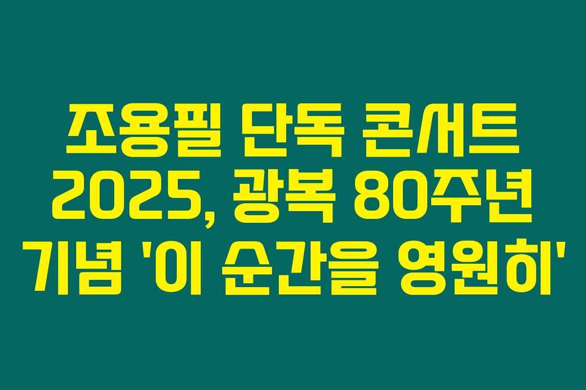 2025년, 조용필의 단독 콘서트가 여러분을 기다립니다. 국민 가수 조용필이 광복 80주년을 기념하여 ‘이 순간을 영원히’ 콘서트를 광복절 후기에 진행합니다. 음악과 역사, 추억을 함께 나누는 특별한 순간을 놓치지 마세요. 아래를 읽어보시면 콘서트의 모든 정보와 예매 방법을 쉽게 확인할 수 있습니다.