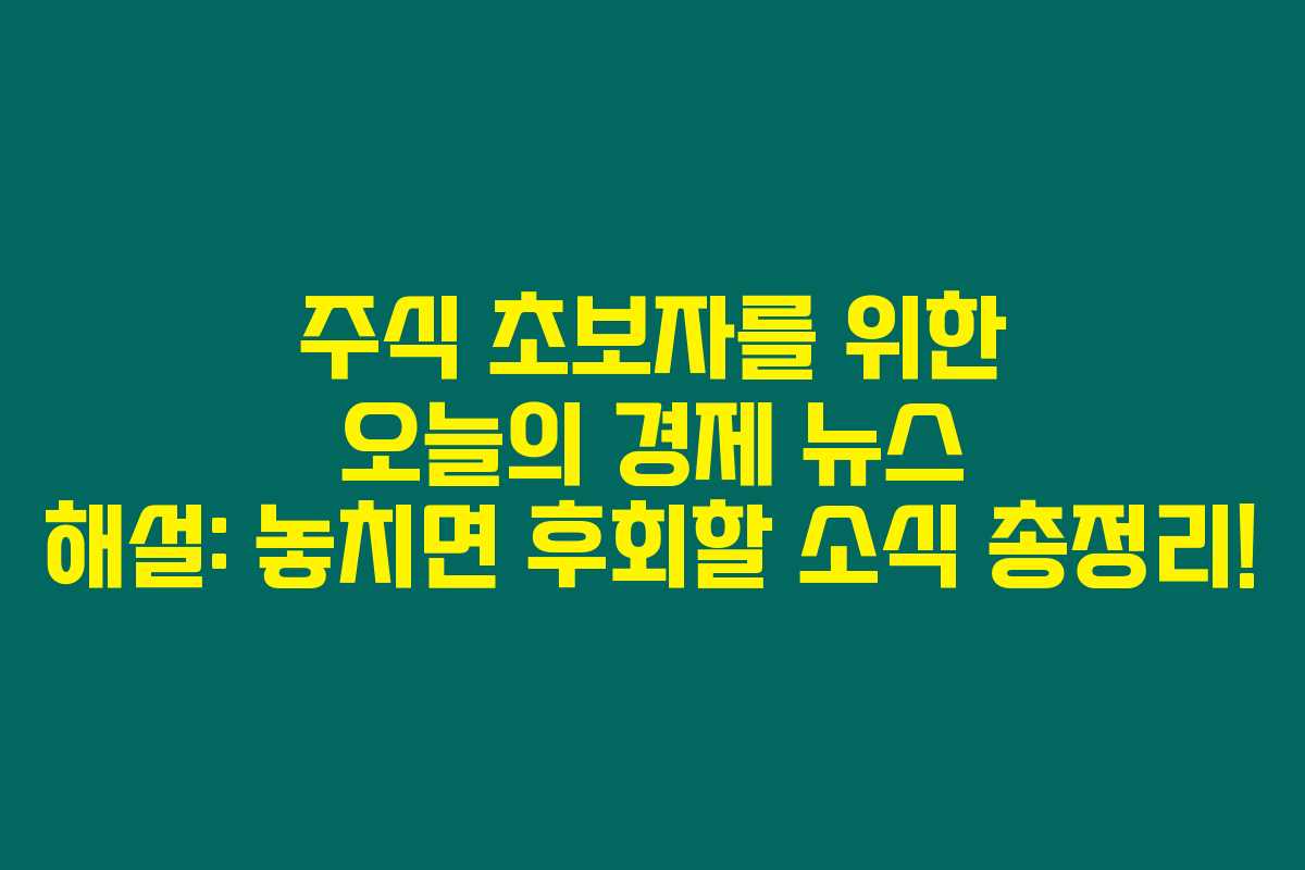 주식 초보자를 위한 오늘의 경제 뉴스 해설: 놓치면 후회할 소식 총정리!
