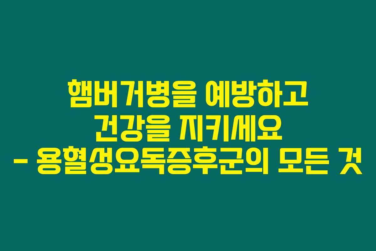 여러분의 소중한 건강을 위해 햄버거병에 대한 경각심을 가지고 식사하는 습관을 기르세요. 햄버거병을 예방하기 위한 작은 노력이 우리의 건강을 지키는 큰 힘이 될 것입니다!