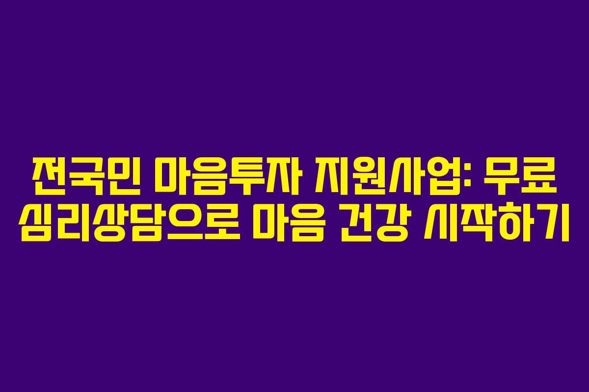 전 국민의 심리건강을 돕기 위해 마련된 전국민 마음투자 지원사업은 누구나 부담 없이 이용할 수 있는 공공 서비스입니다. 주요 서비스인 심리상담과 정서회복 프로그램은 전 과정이 무료로 제공되고, 모바일과 지역 센터를 통해 접근성이 크게 개선되었습니다. 아래 내용을 통해 내 지역에서 받을 수 있는 혜택과 신청 방법을 쉽고 빠르게 확인해보세요.