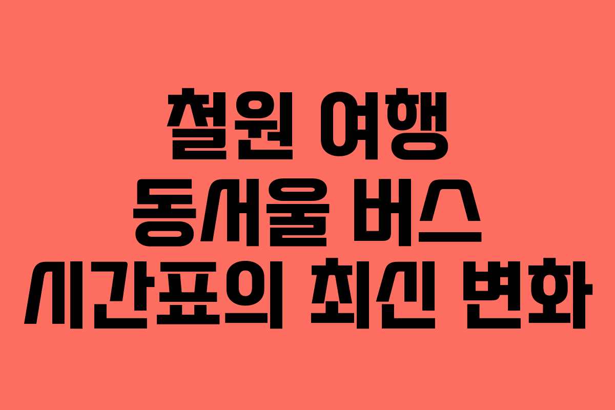 아래를 읽어보시면 철원 여행에 필요한 동서울 버스 시간표의 최신 변화와 요금 정보를 한눈에 확인할 수 있습니다. 최신 일정은 수시로 바뀔 수 있어 확인 팁도 함께 담았습니다.