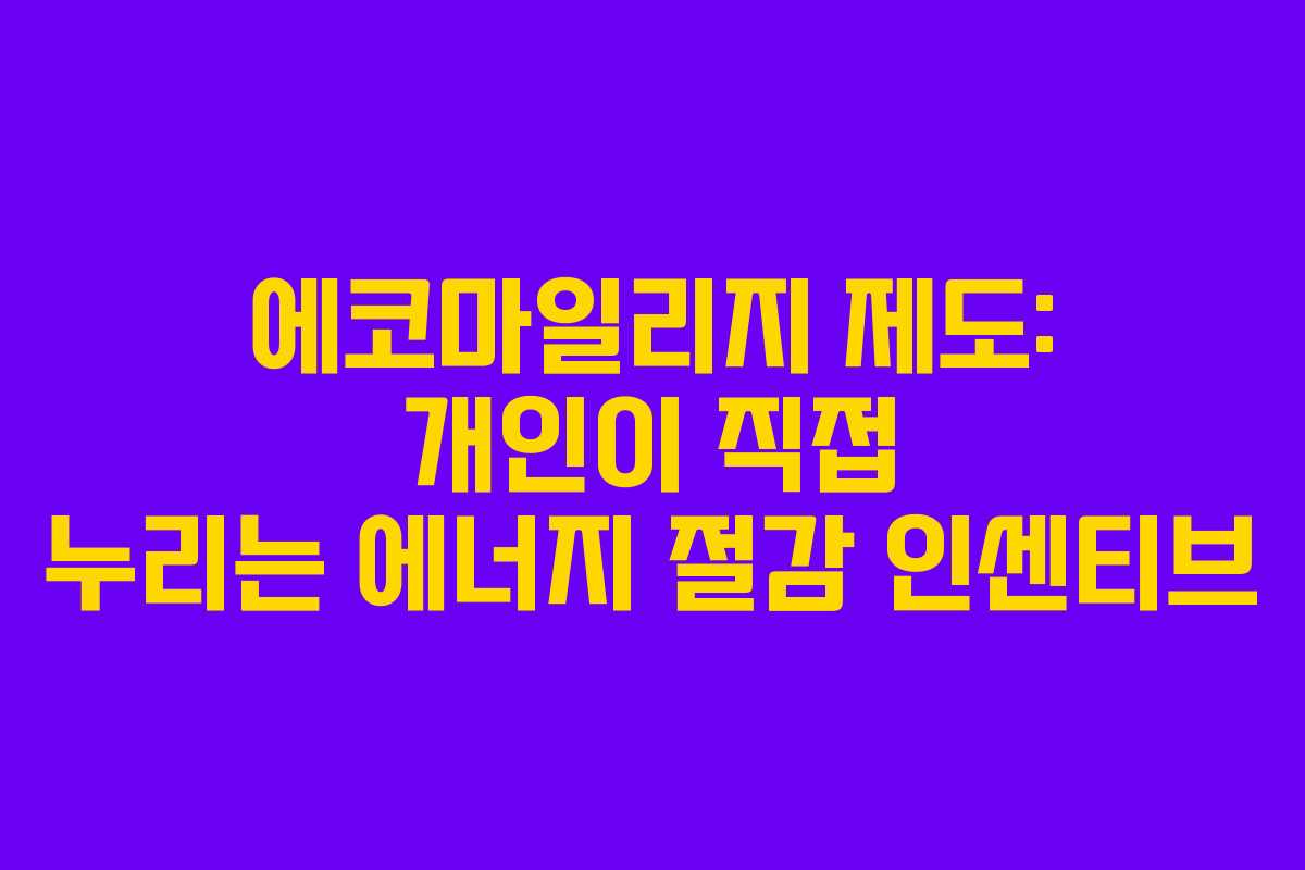 에코마일리지 제도: 개인이 직접 누리는 에너지 절감 인센티브