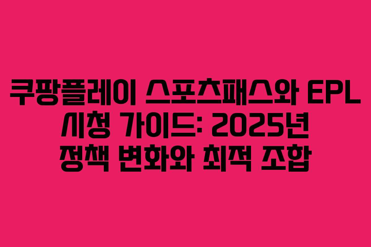 쿠팡플레이 스포츠패스와 EPL 시청 가이드: 2025년 정책 변화와 최적 조합