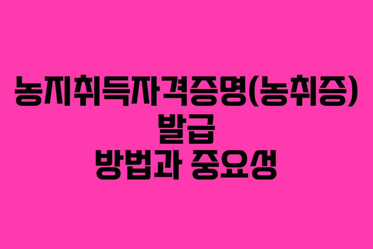 농취증 발급은 농업경영계획서 제출, 주말체험농장 운영, 농지전용 허가를 통해 가능합니다. 단, 절대농지의 경우 발급이 불가능합니다.